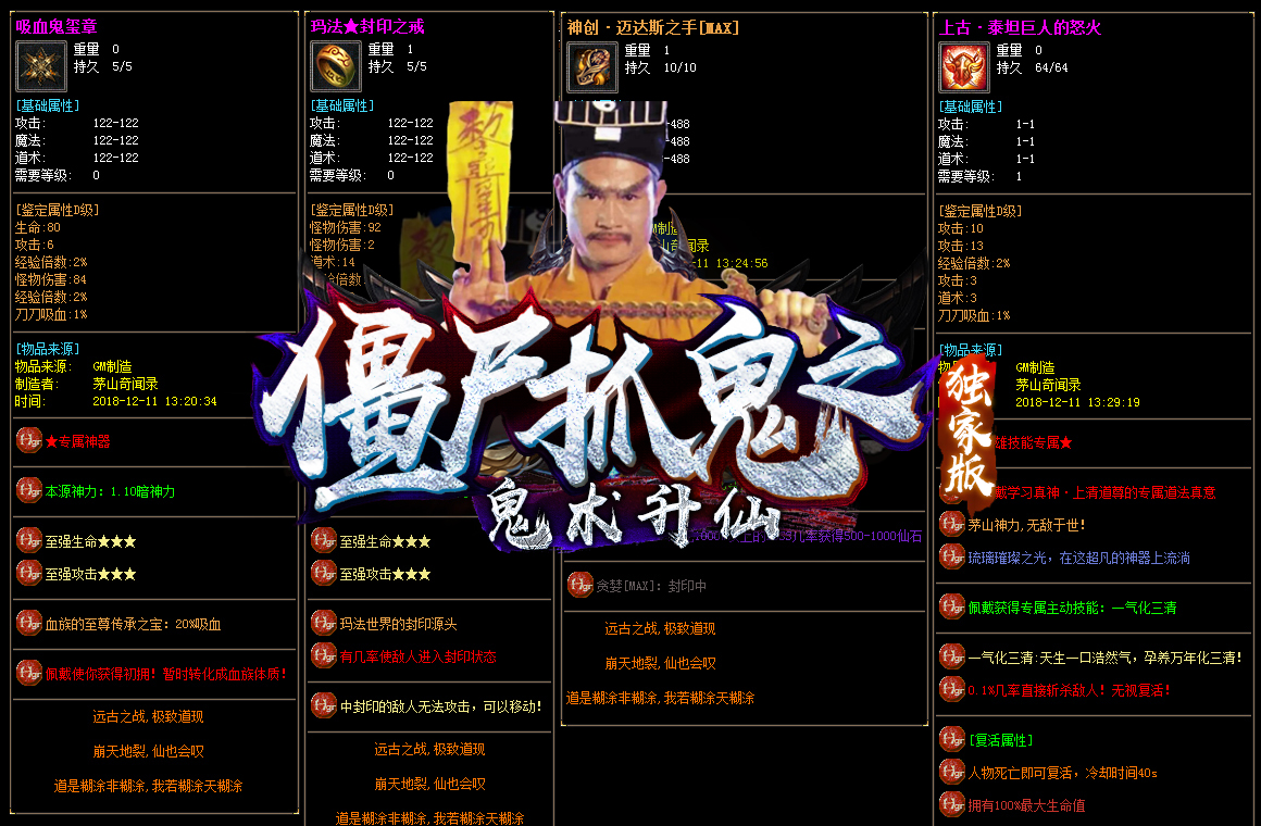 - 【爆率】 本服所有装备全部靠怪物爆出,无任何坑爹功能,专为散人考虑,乐趣多多.